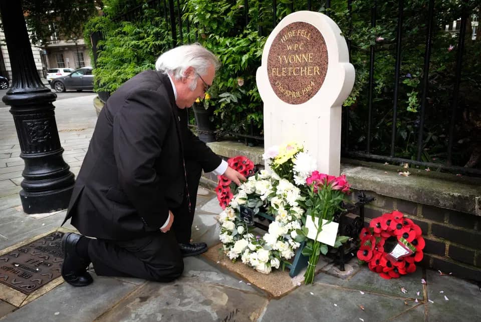 John Murray at the memorial to Yvonne Fletcher in St James’s Square, London.
